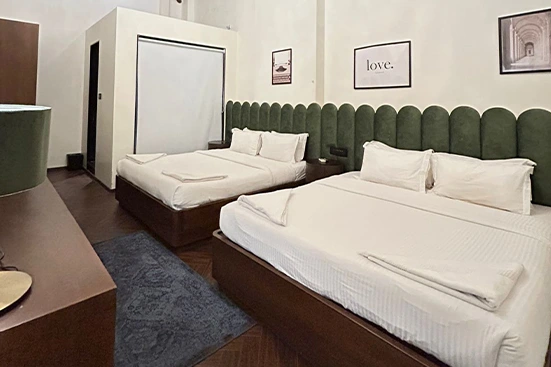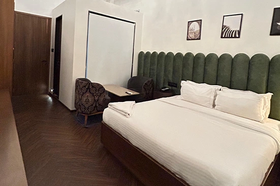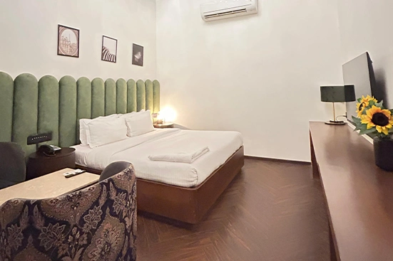 The Jr Suite Room at Gulf Hotel Colaba offers extra space and comfort for a relaxing stay. Suitable for up to three guests, it includes a double bed, sitting area, air conditioning, free WiFi, a TV, and daily housekeeping. Shared bathrooms are clean and accessible 24 hours. Located near Gateway of India and Colaba Market, it is ideal for guests seeking a spacious stay in a prime location.